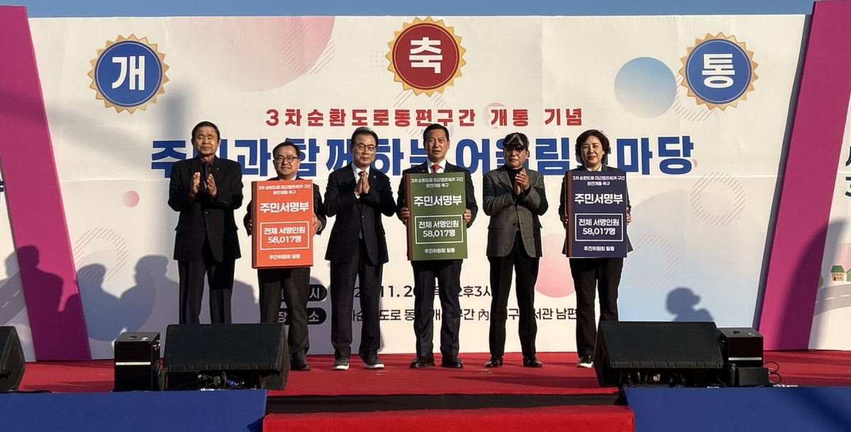 그러면서 “3차 순환도로는 단순한 길이 아니라 대구와 남구의 미래 가능성을 열어가는 길인 만큼 서편도로도 조기에 완전 개통이 될 수 있도록 5만 8000여 명의 주민서명부를 대구시와 중앙정부에 전달하고 적극 건의하겠다”고 덧붙였다.