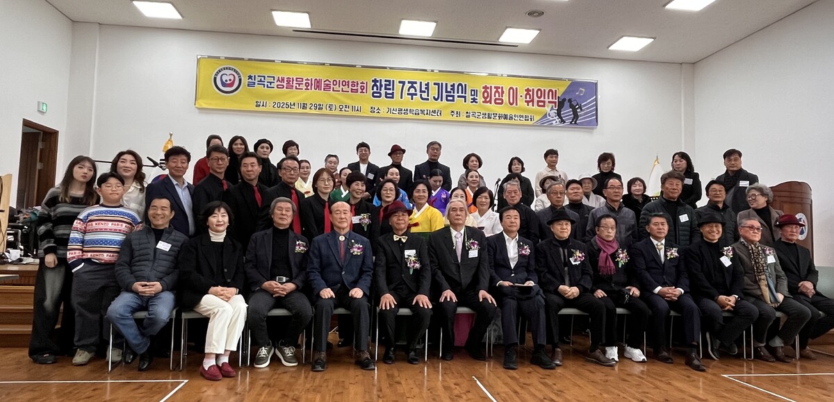 경북 칠곡군생활문화예술인엽합회는 최근, 기산면 평생학습복지센터 대강당에서 ‘창립 7주년 기념식 및 회장 이·취임식’을 개최했다.