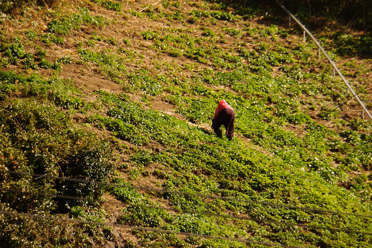 부지갱이는 3월 말부터 5월 사이에 채집한다. 겨울에도 눈 속에서 자란다. 3월 말부터 4월 중순까지 첫 번째 잎을 뜯는다. 이때 뜯은 잎이 가장 맛있다. 이때 뜯은 잎은 바로 삶아서 냉동 보관한 뒤 1년 내내 생채로 먹는다. 새잎으로는 장아찌를 담가 먹기도 한다. 5월 초에는 두 번째로 잎을 채취한다. 이때 채취한 잎들은 데친 뒤 말려서 묵나물로 먹는다.
