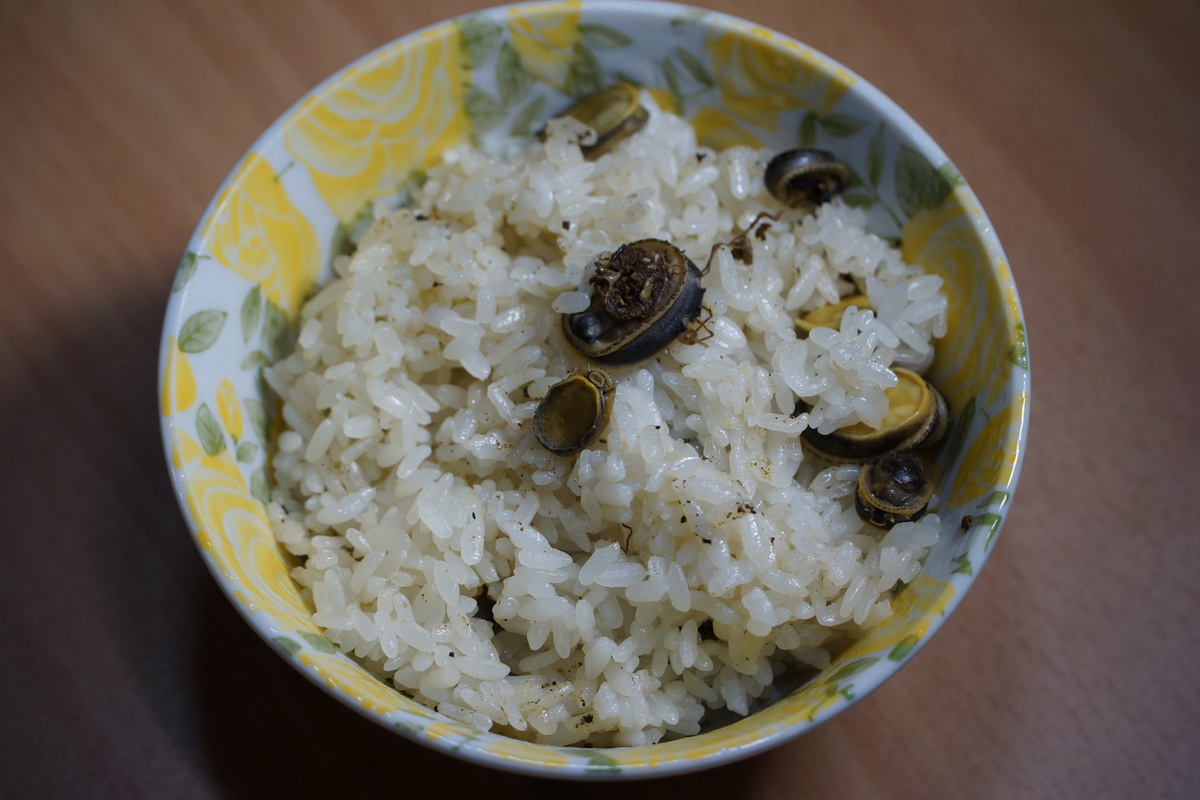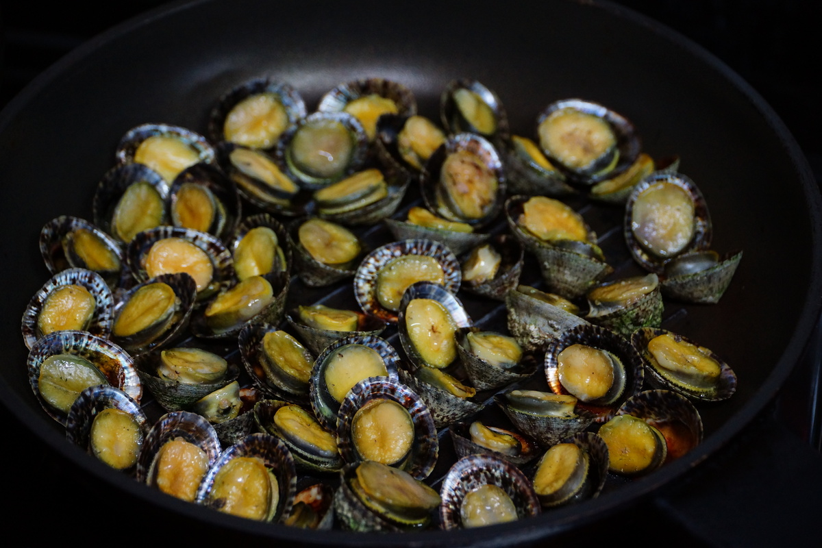 △ 대형 바다 말로 만든 대황밥과 따개비 밥