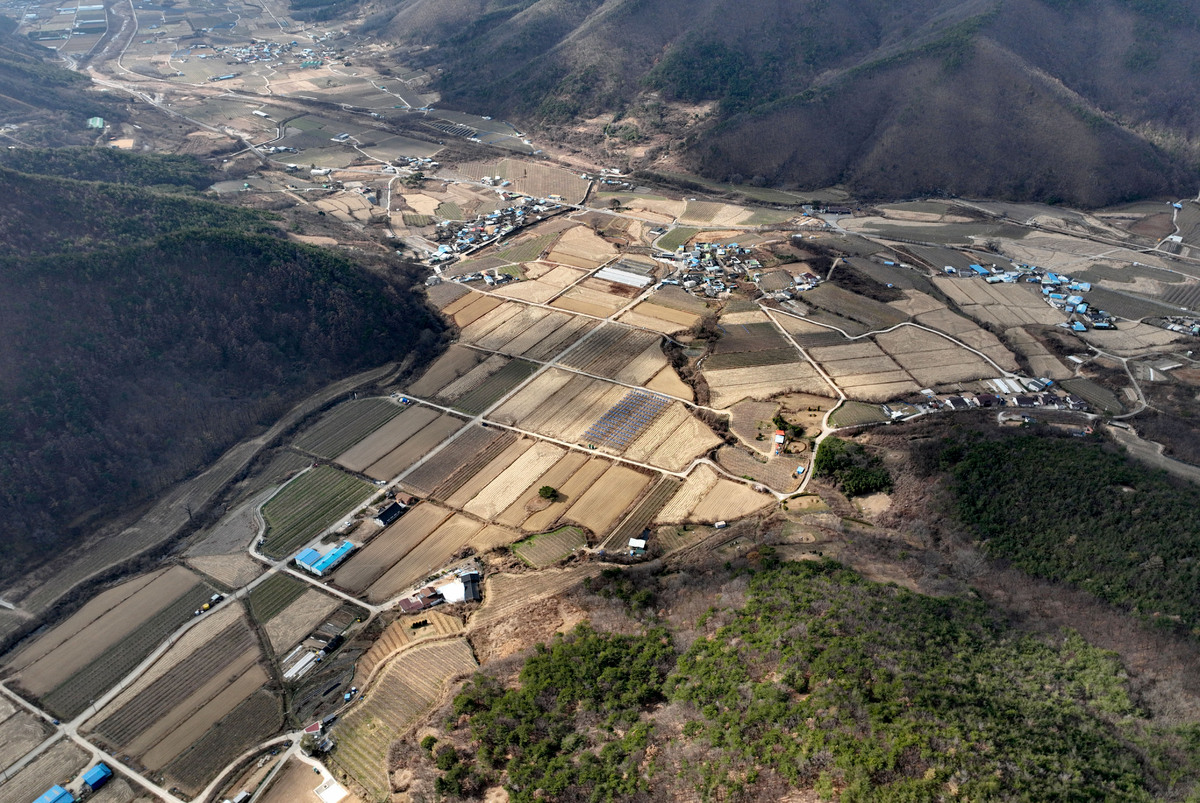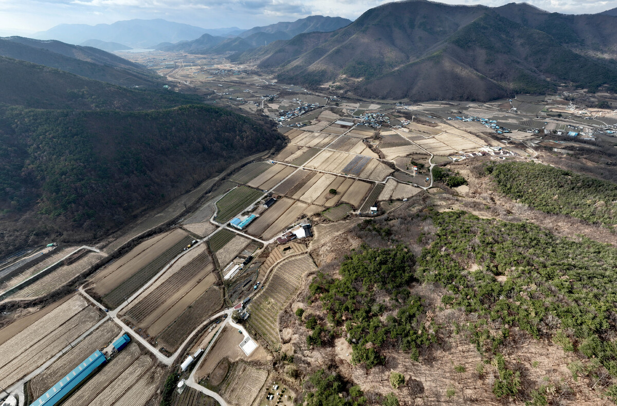 농림축산식품부의 ‘2026년 스마트 과수원 특화단지 조성사업’ 공모에서 포항시 기북면, 안동시 길안면, 청송군 현동면 일대 사과원 단지 3곳이 선정됐다. 포항 기북면 21.7㏊(51가구), 안동 길안면 20.1㏊(19가구), 청송 현동면 19.5㏊(27가구) 등 총 61.3㏊로 전국에서 가장 많은 사업 규모다. 스마트 과수원 특화단지 조성은 재해에 강한 신품종 전환, 무인화 시설, 공동장비 등을 지원해 과수산업 경쟁력을 높이는 사업이다. 11일 오전 사업에 선정된 포항시 북구 기북면 오덕리와 탑정리 일원의 모습. 사진 아래쪽이 탑정리이다. /이용선기자 photokid@kbmaeil.com