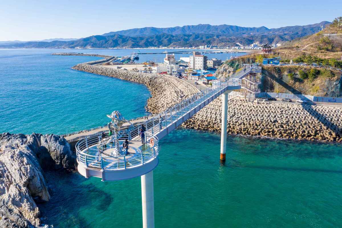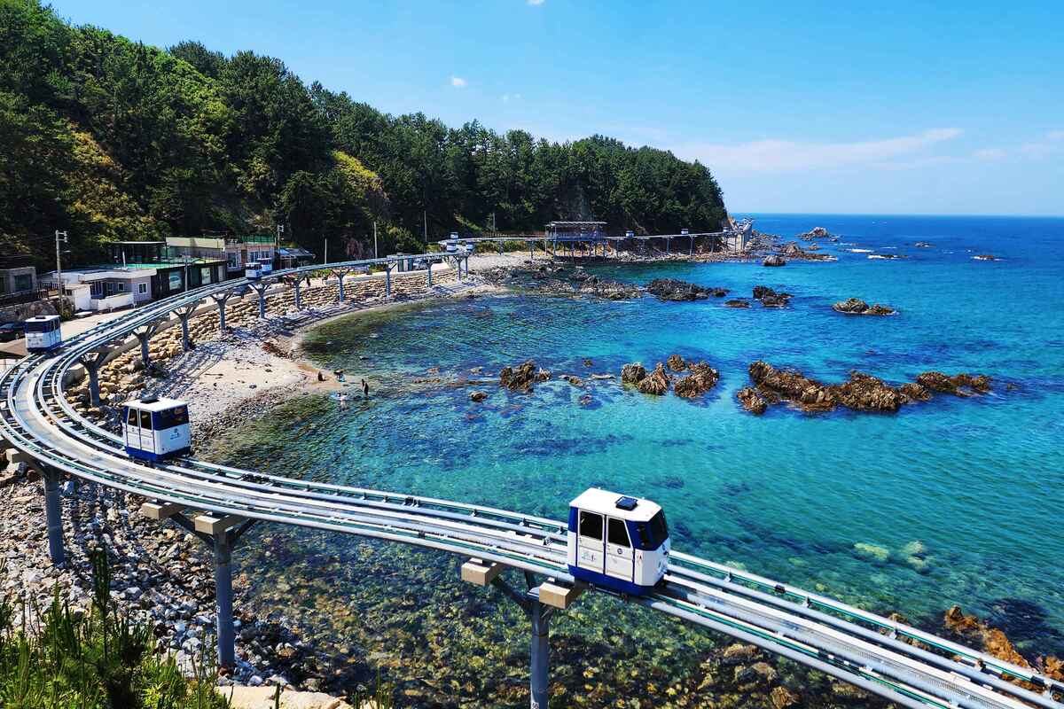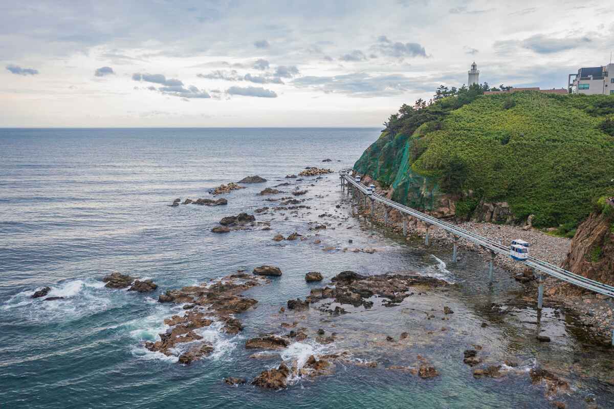 요즘 울진에서 가장 ‘핫한’ 즐길 거리를 꼽으라면 죽변해안스카이레일이 아닐까 싶다. 드라마 〈폭풍 속으로〉 촬영지와 ‘하트 해변’으로 유명한 죽변 해안을 따라 달리는 모노레일이다. 최대 높이 11m에 레일이 설치되어 이전에는 눈에 담을 수 없던 옥빛 바다와 기기묘묘한 바위를 감상하기 좋다. 모노레일 운행 속도가 걷는 속도와 비슷해 울진의 온갖 푸른색을 느긋하게 즐길 수 있다.