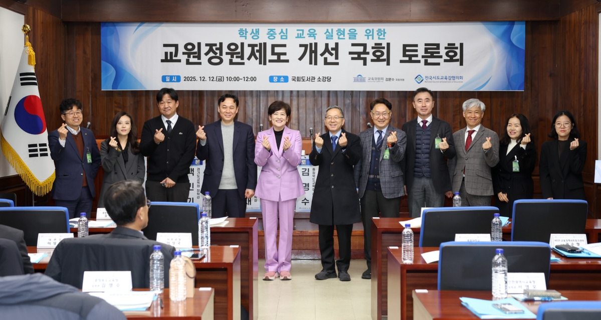 협의회는 12일 국회도서관 소강당에서 ‘학생 중심 교육 실현을 위한 교원정원제도 개선’ 토론회를 열고 산정 방식의 구조적 한계를 집중 점검했다. 토론회에는 김문수 국회의원을 비롯해 17개 시도교육청 장학관·장학사, 교원정책 전문가 등 50여 명이 참석했다.