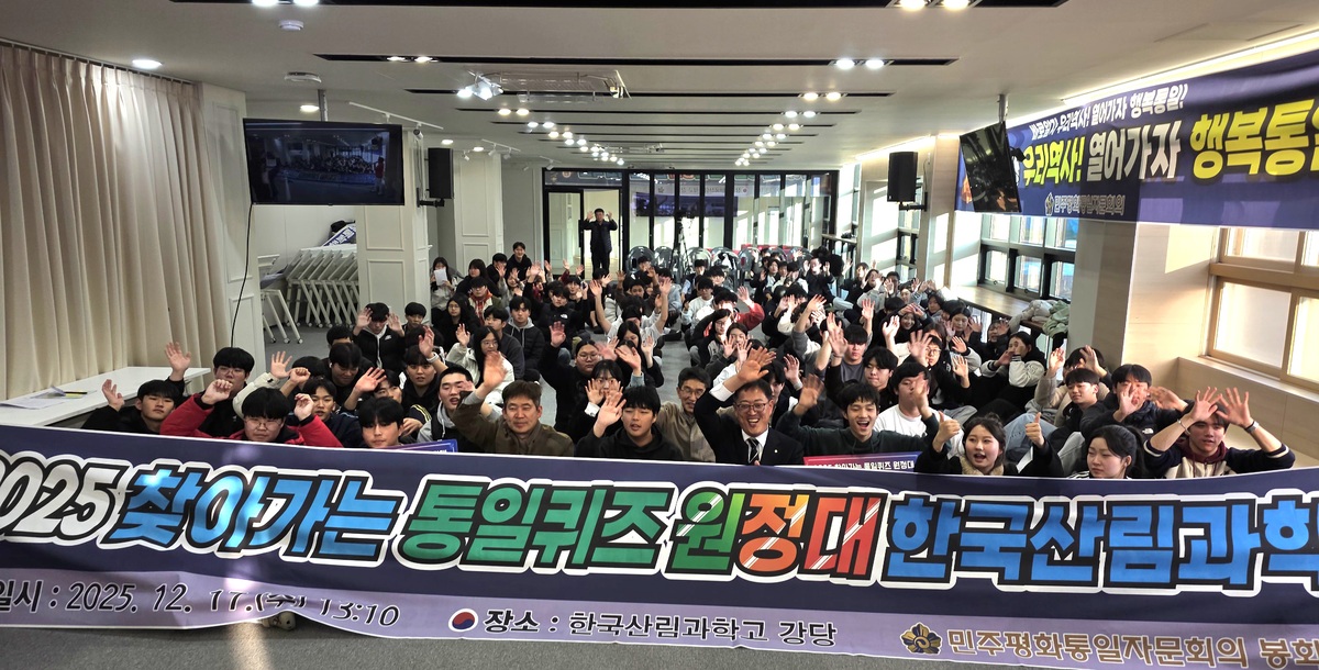 민주평화통일자문회의 봉화군협의회(회장 유태백)는 17일 한국산림과학고등학교 강당에서 학생과 교사 및 자문위원 140여명이 참석한 가운데 ‘2025 청소년 통일퀴즈 원정대’를 개최했다.