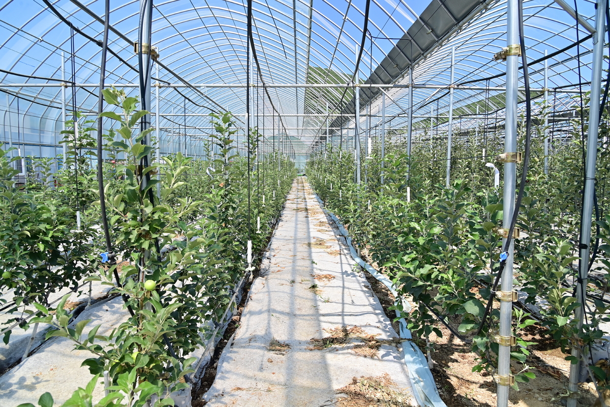 스마트과수원 특화단지 조성 사업은 2축형·다축형·밀식재배 등 기계화에 적합한 구조의 평면형 과수원을 조성하고 내재해·조·중생종 품종으로의 갱신과 재해예방시설 확충을 통해 기후변화에 대응한 안정적 생산 기반을 구축하도록 돕는 사업이다.