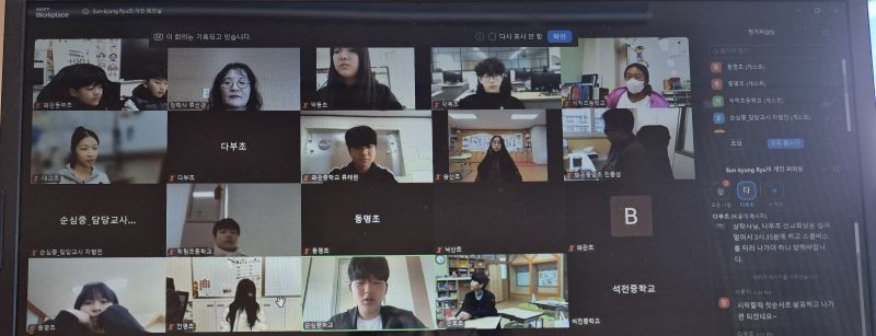 경북 칠곡교육지원청은 최근, 관내 초·중학교 학생회 임원들을 대상으로 ‘건전하고 행복한 학생문화 조성을 위한 칠곡-해남 학생자치 원격 화상회의’를 개최했다.