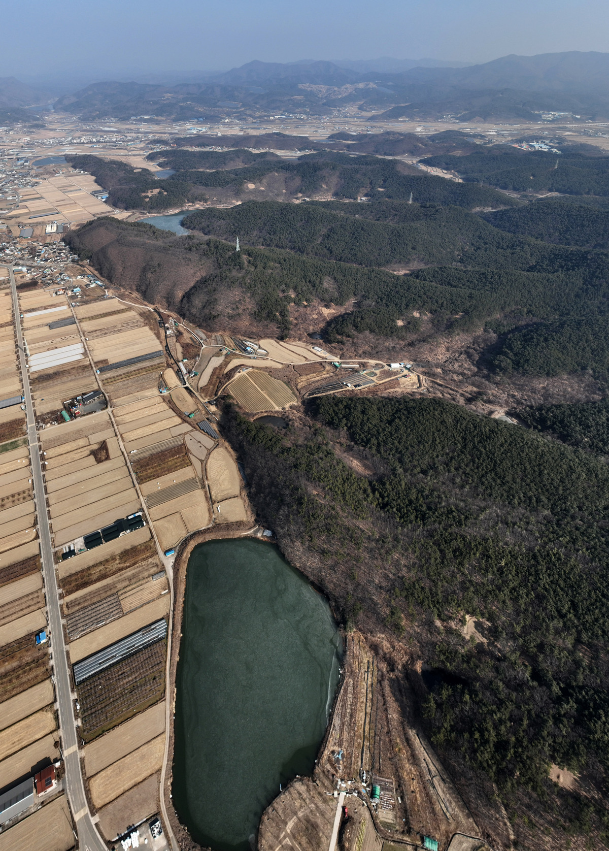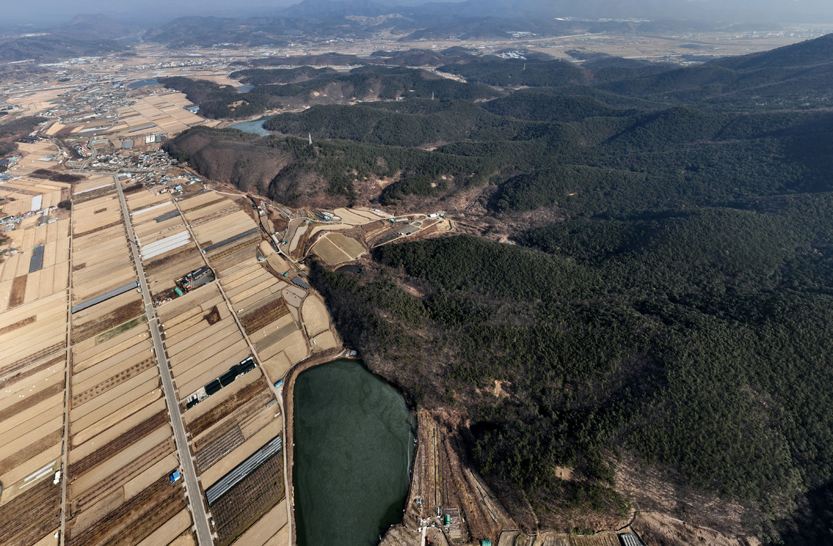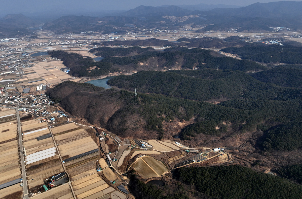경북도, 경주시, (주)루브루가 15일 경주시 서면 도계·서오·천촌리 일원 약 213만㎡(약 64만 평)의 부지에 3200억 원 규모의 복합 스포츠·휴양형 관광단지인 ‘경주 코리아 폴로파크 관광단지 조성’ 업무협약을 체결했다. 15일 오후 드론으로 촬영한 서면 일원의 모습. 사진 앞쪽부터 천촌, 서오, 도계리이다. /이용선기자 photokid@kbmaeil.com