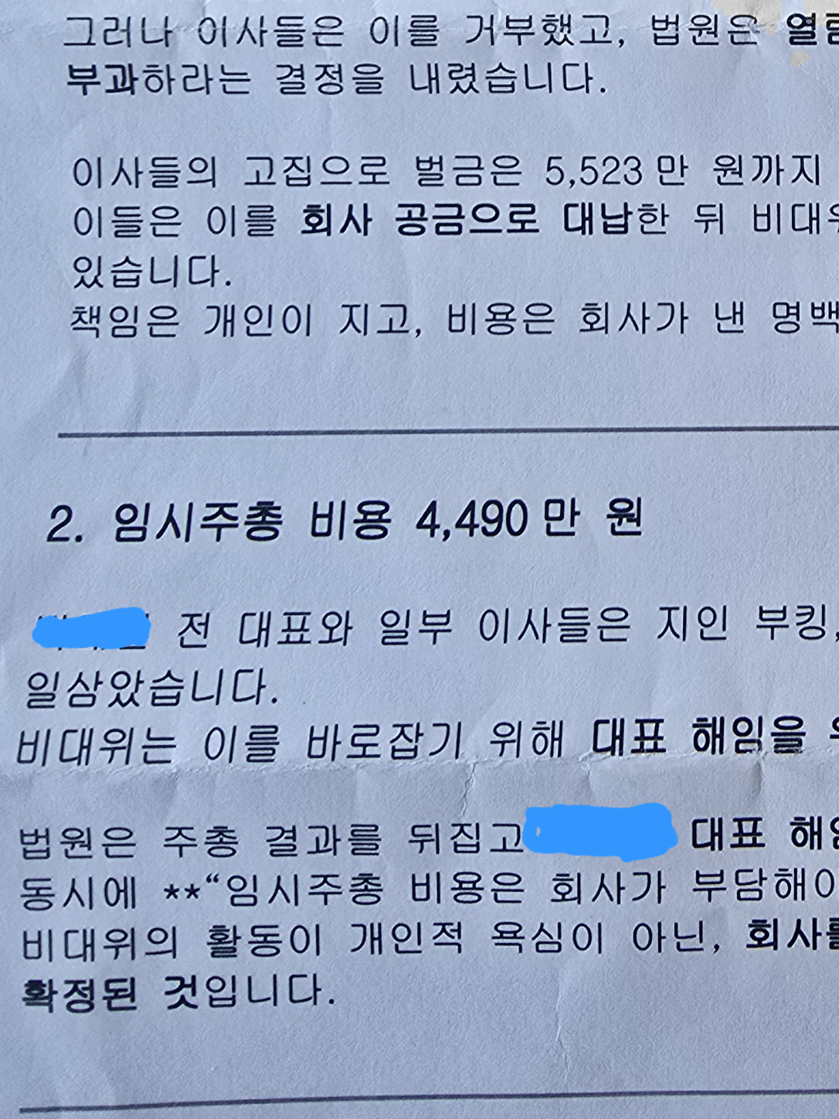정보 왜곡 논란도 혼탁 양상을 더욱 부추기고 있다. 해임된 전 대표이사가 현재 상고를 제기해 법적 절차가 진행 중임에도 불구하고, 일부 유인물에서는 모든 재판이 이미 종료된 것처럼 전달되고 있는 것. 회원 D씨는 “재판이 끝난 것처럼 말하는 것은 회원들의 판단을 의도적으로 흐리게 만드는 행위”라며 “사실관계를 정확히 알리기보다 유리한 프레임만 퍼뜨리는 것은 명백한 허위 선전”이라고 힐난했다.
