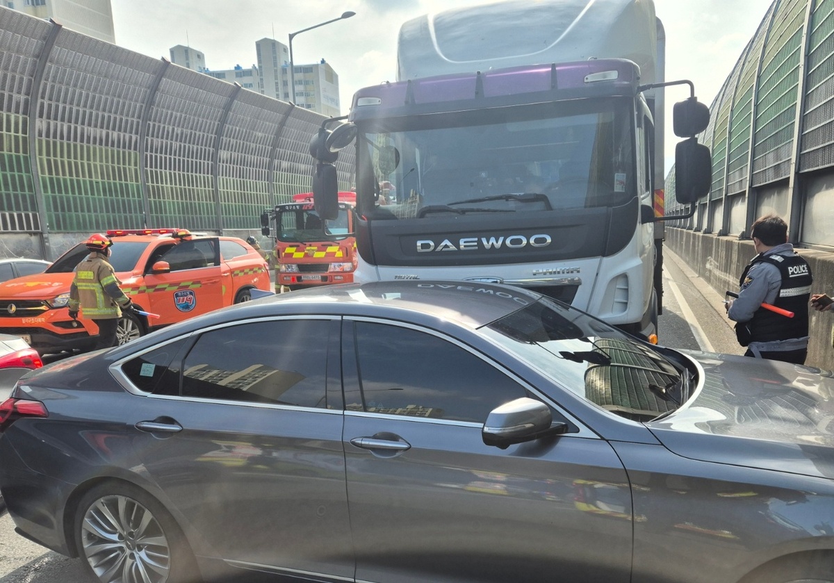 7일 오전 10시6분쯤 대구 달서구 장기동 신천대로에서 대형 화물차가 옆 차로를 달리던 승용차를 들이받는 사고가 발생했다.