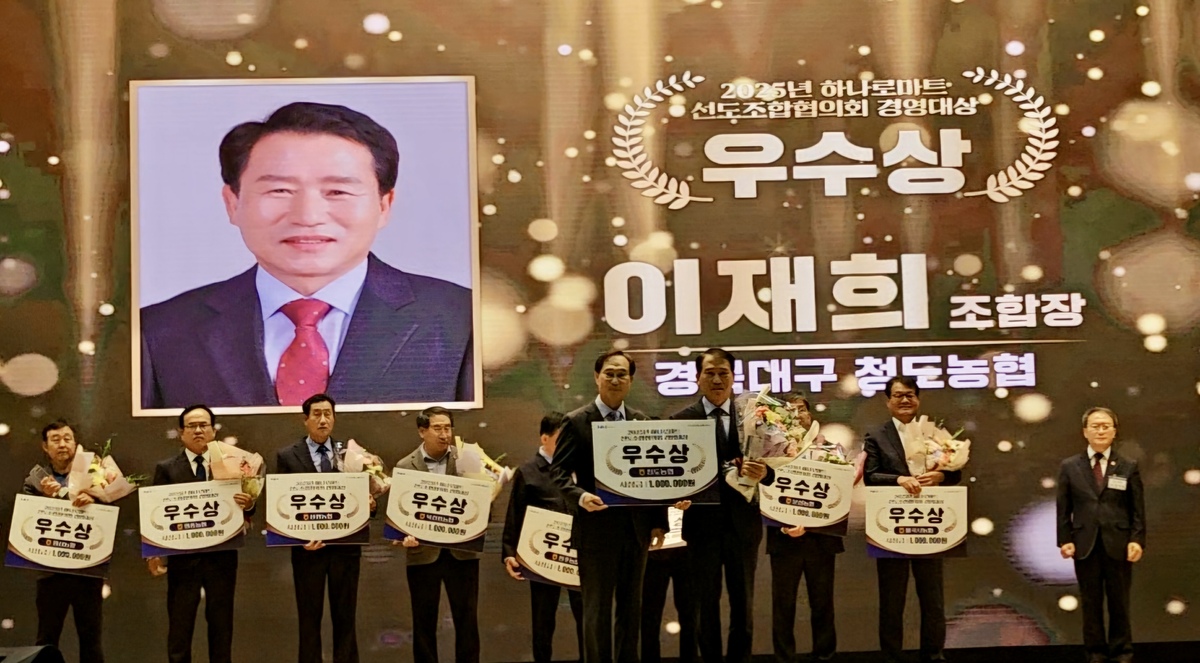 청도농협(조합장 이재희) 하나로마트가 7일 ‘2026년 하나로마트 선도조합협의회 정기총회’에서 경영우수상을 받았다.