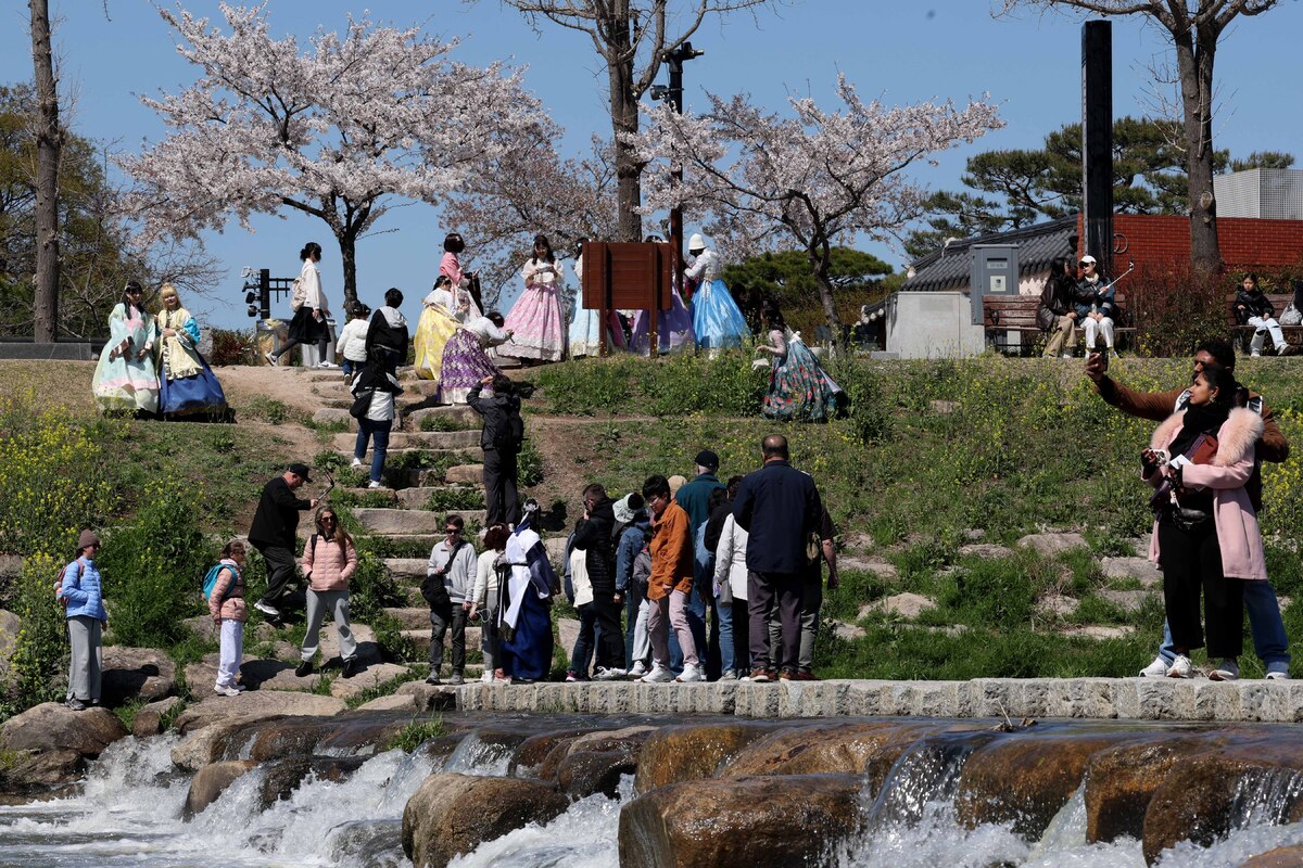 한국의 봄을 즐기는 외국 관광객