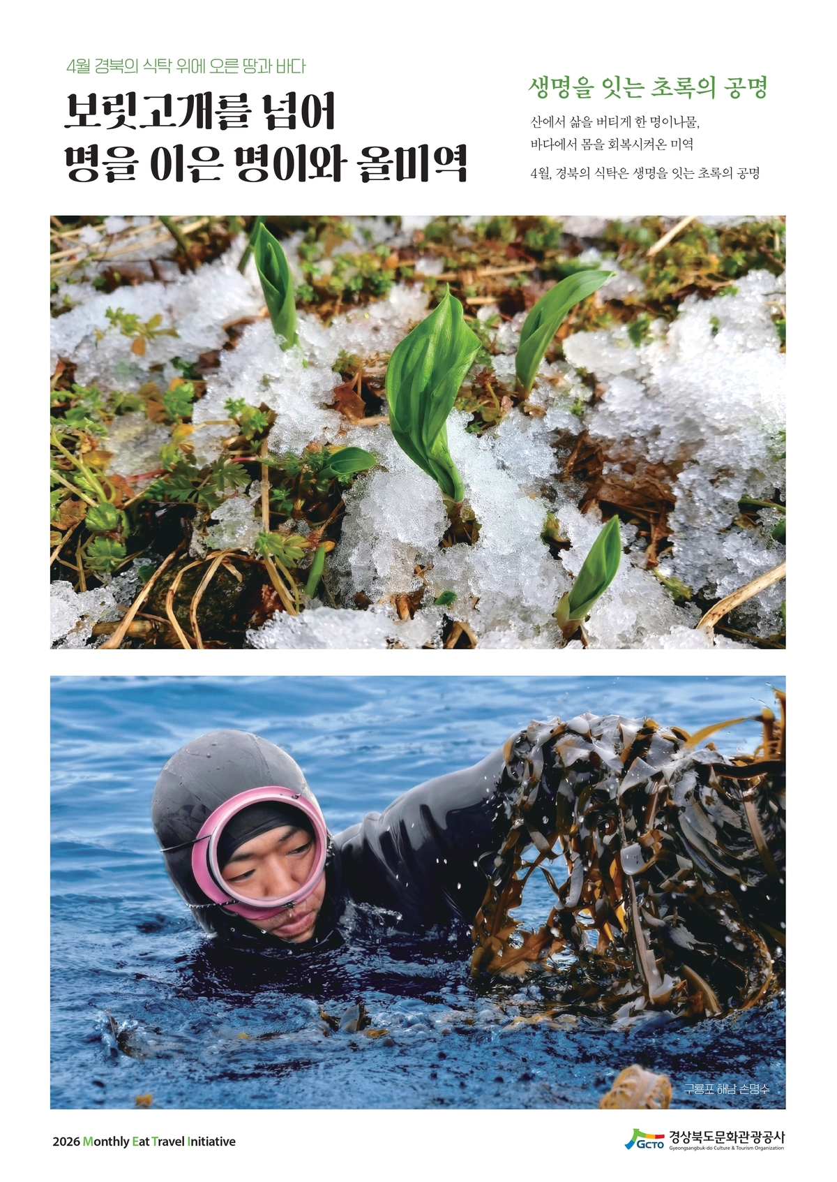 경북문화관광공사(사장 김남일)는 4월 ‘경북 미식여행 METI(Monthly Eating Travel Initiative)’ 테마로 명이나물과 올미역을 선정하고 관련 미식 콘텐츠를 선보였다.