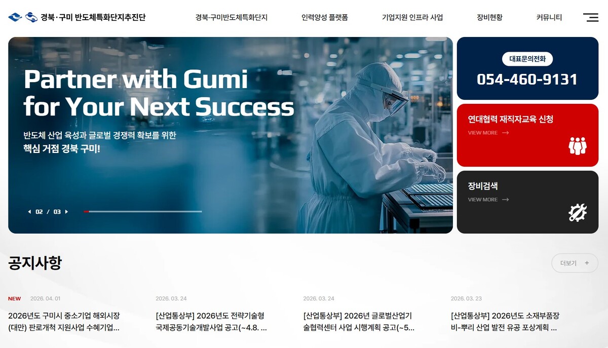 경북·구미 반도체 산업의 핵심 컨트롤타워인 ‘경북·구미 반도체특화단지 추진단’이 공식 홈페이지(https://gumisemi.or.kr)를 구축하고 본격 운영에 들어갔다. 해당 홈페이지는 구미시청 홈페이지와도 연계돼 접근성을 높였으며, 누구나 손쉽게 접속해 관련 정보를 확인할 수 있다.