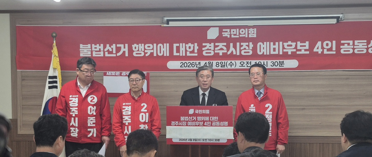 경주시장 선거에 출마한 국민의힘 예비후보 4명이 주낙영 예비후보를 겨냥해 불법 선거운동 의혹을 제기하며 사퇴를 촉구했다.