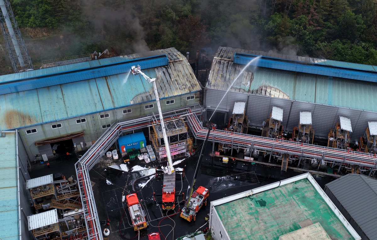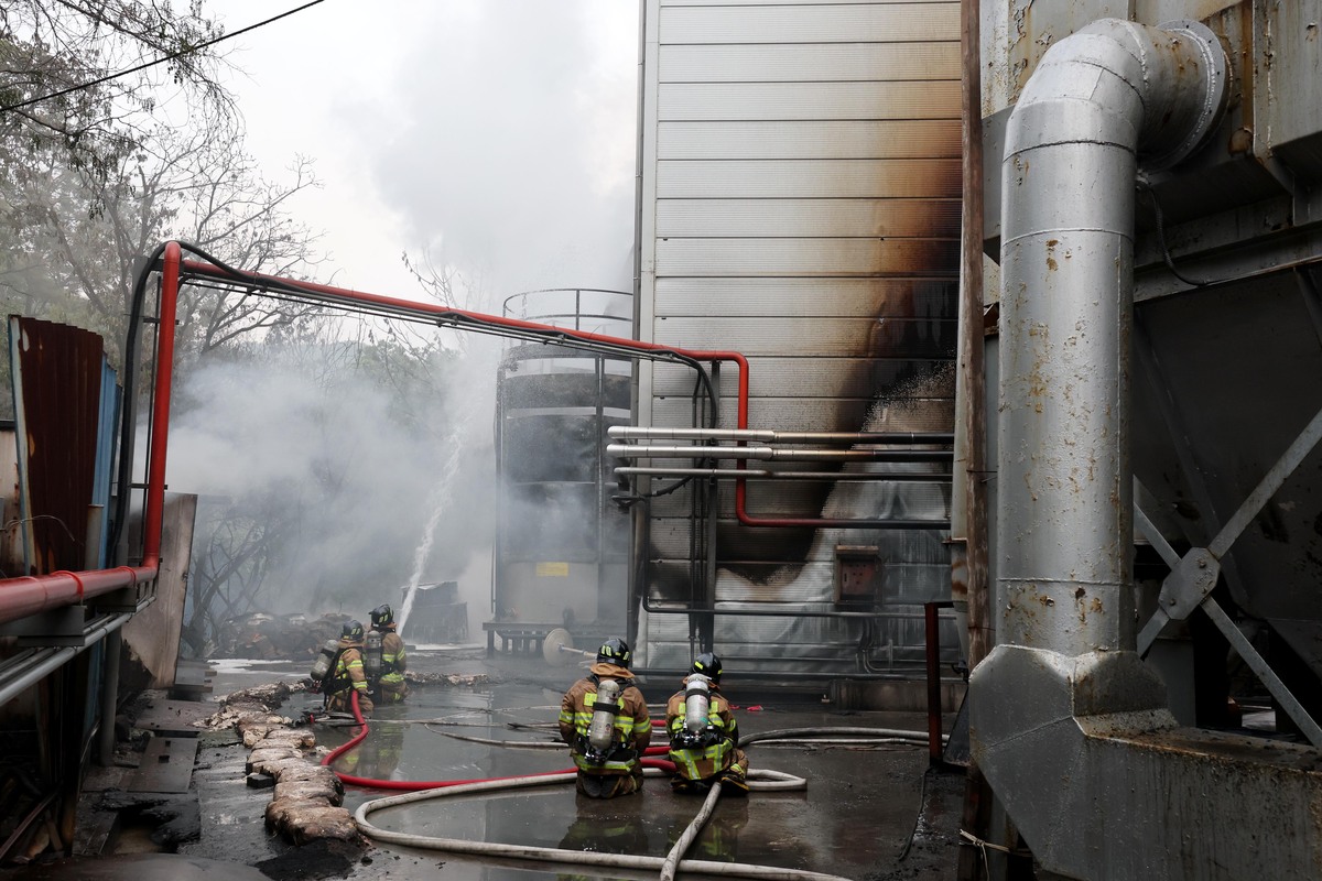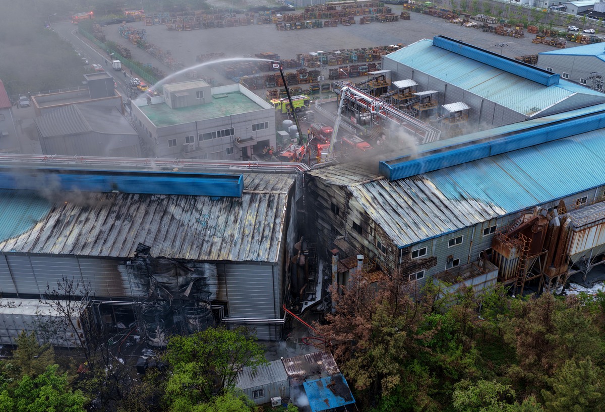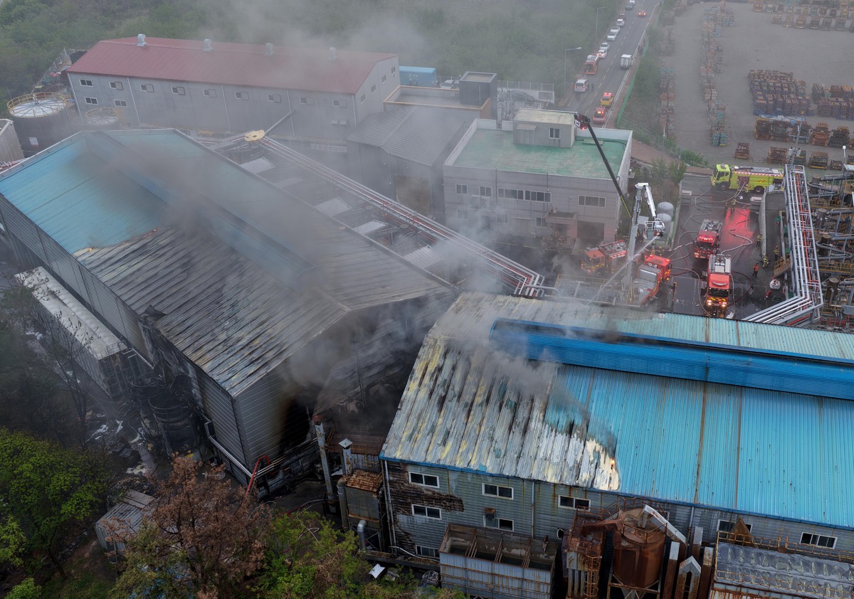 28일 오후 5시5분쯤 경주시 건천읍 산업단지에 있는 폐비닐 및 폐플라스틱 열분해유 제조공장에서 용접 부주의로 추정되는 화재가 발생했다. 소방대원이 진화작업을 하고 있다. 소방 당국은 오후 6시 44분쯤 큰불을 잡았고, 완전 진화까지는 장시간이 필요할 것으로 예상하고 있다. /이용선기자 photokid@kbmaeil.com