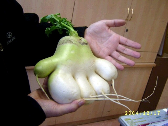 사람 손닮은 무 수확