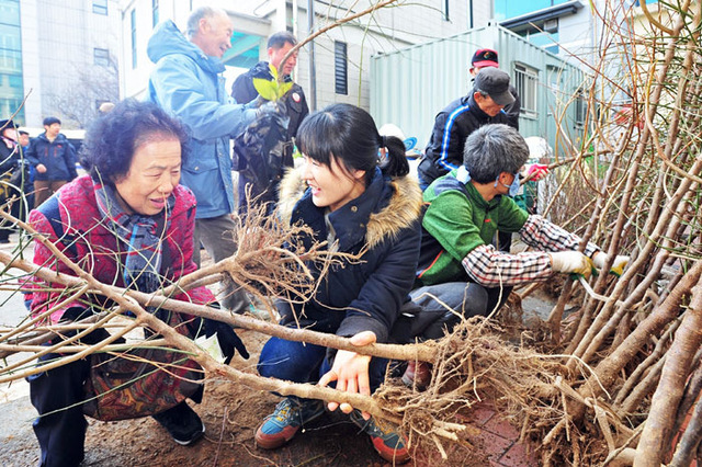 대구 남구는 지난 21일 구청 후문에서 산수유, 매실나무, 석류나무, 라일락 등 총 8종 3천120여 그루를 1인 3그루씩 나눠주는 `2014년 나무 나눠주기` 행사를 실시했다.