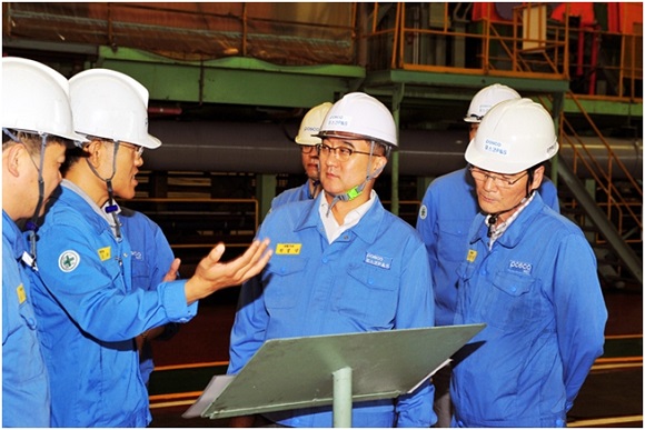 포스코P&S 천범녕 사장은 합병 첫 날인 지난 1일 한 식구가 된 옛 포스코AST 안산공장을 찾아 임원 및 직책보임자들과 간담회를 가진 뒤 현장을 둘러봤다.