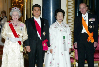 영국을 국빈방문중인 노무현 대통령은 1일 저녁(한국시간 2일 오전) 버킹엄궁 2층 연회장에서 엘리자베스 2세 영국 여왕이 마련한 국빈만찬에 참석, 공식환영식에 이어 다시 한번 최고의 영접을 받았다.