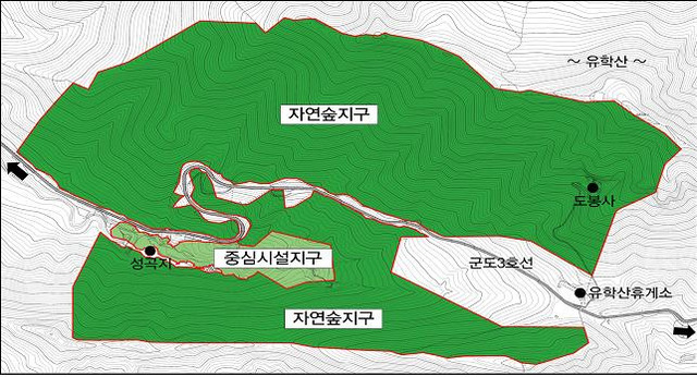 경북도가 전국 최초로 칠곡군 석적읍 성곡리에 104억원의 국비를 투자해 산림복지형 휴양시설인 `사회복지나눔 숲`을 조성하기 때문이다.