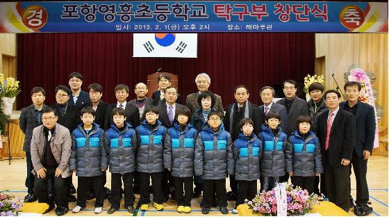 창단식은 경북도교육청과 포항교육지원청, 경북체육회, 경북도탁구협회, 포항시, 포항시체육회, 포항시탁구협회 관계자와 일선 학교장, 학부모 등 100여 명이 참석한 가운데 축하공연과 경과보고, 창단사, 축사, 선수단소개, 창단지원금 전달 순으로 진행됐다.
