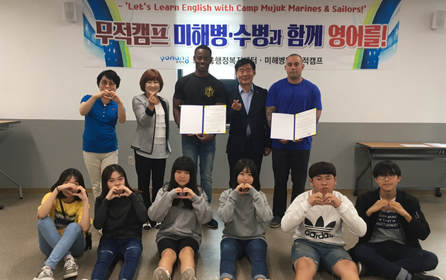 오천읍 맞춤형 복지팀이 운영하는 학습 멘토 프로그램은 미 해병대 캠프무적 장병 및 지역 내 중학교 학생 15명이 학교 방과 후 수업에서 만나 영어로만 대화하는 회화교실이다.