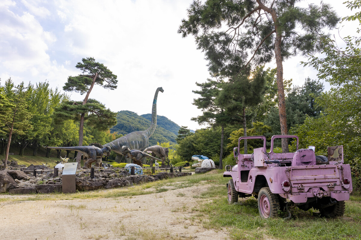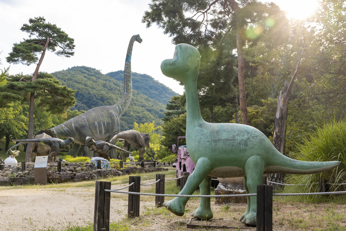 칠곡군 가산수피아에 설치된 거대한 브라키오사우루스가 아이들에겐 모험을, 부모 세대에겐 추억을 선사하며 가족형 관광지로 주목받고 있다.