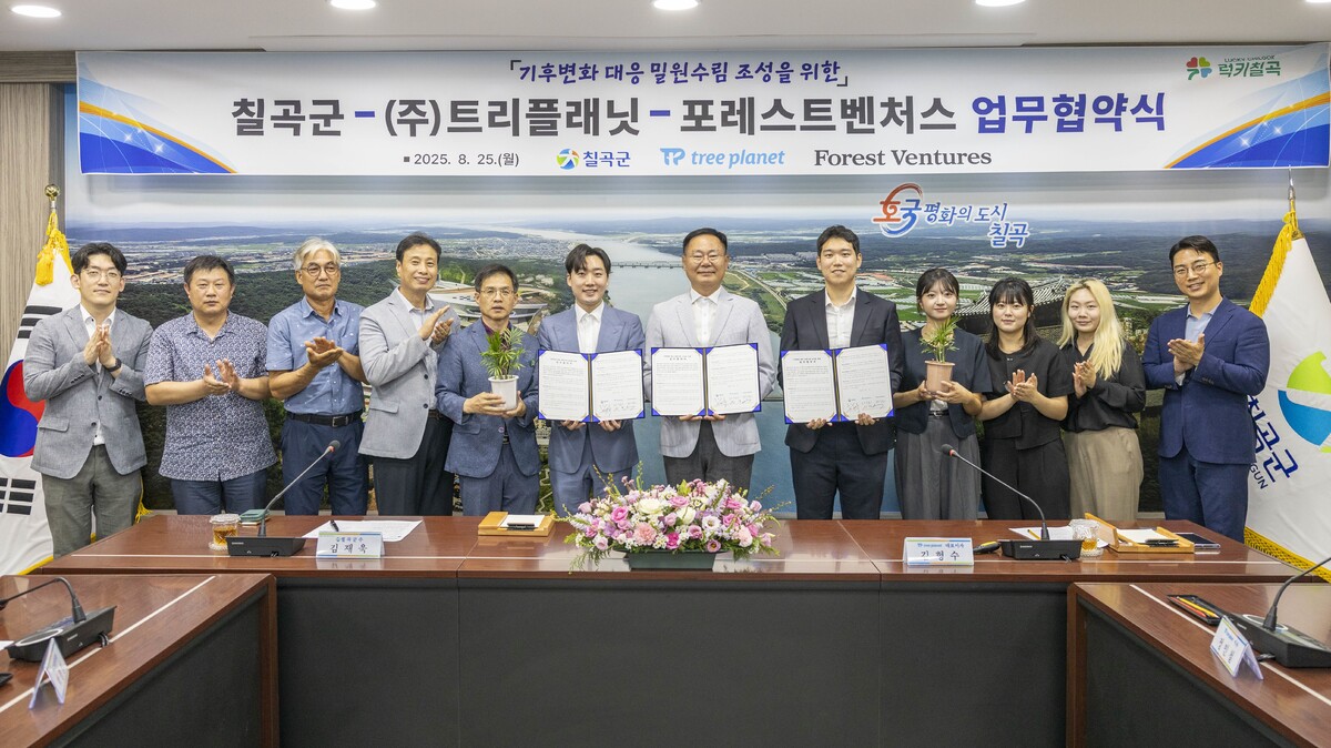 경북 칠곡군은 25일 트리플래닛, 포레스트벤처스와 기후변화 대응을 위한 밀원수림 조성 업무협약을 맺었다.