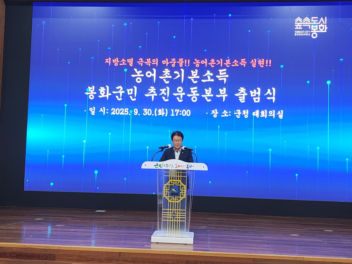 농어촌기본소득 봉화군민 추진운동본부는 지난달 30일 오후 5시 봉화군청 대강당에서 창립대회를 열고 본격적인 활동에 돌입했다.