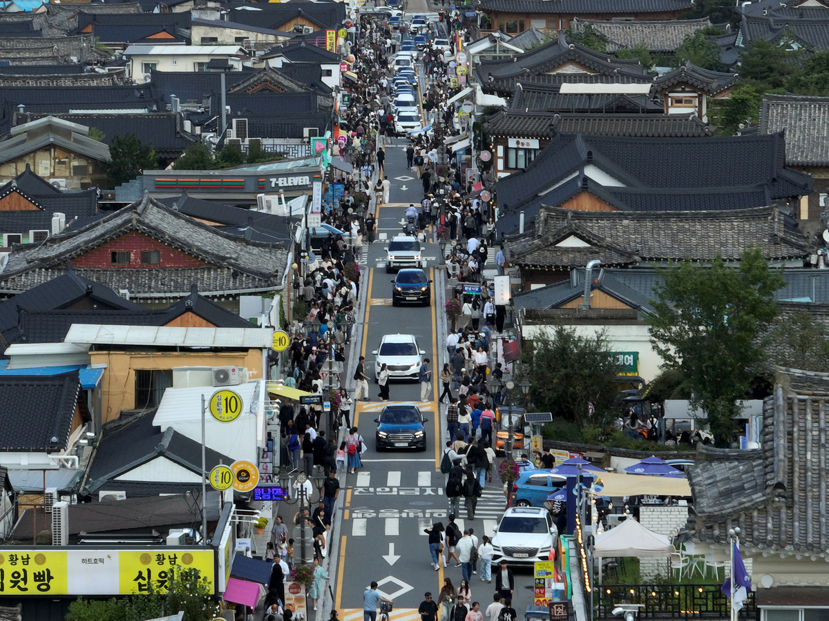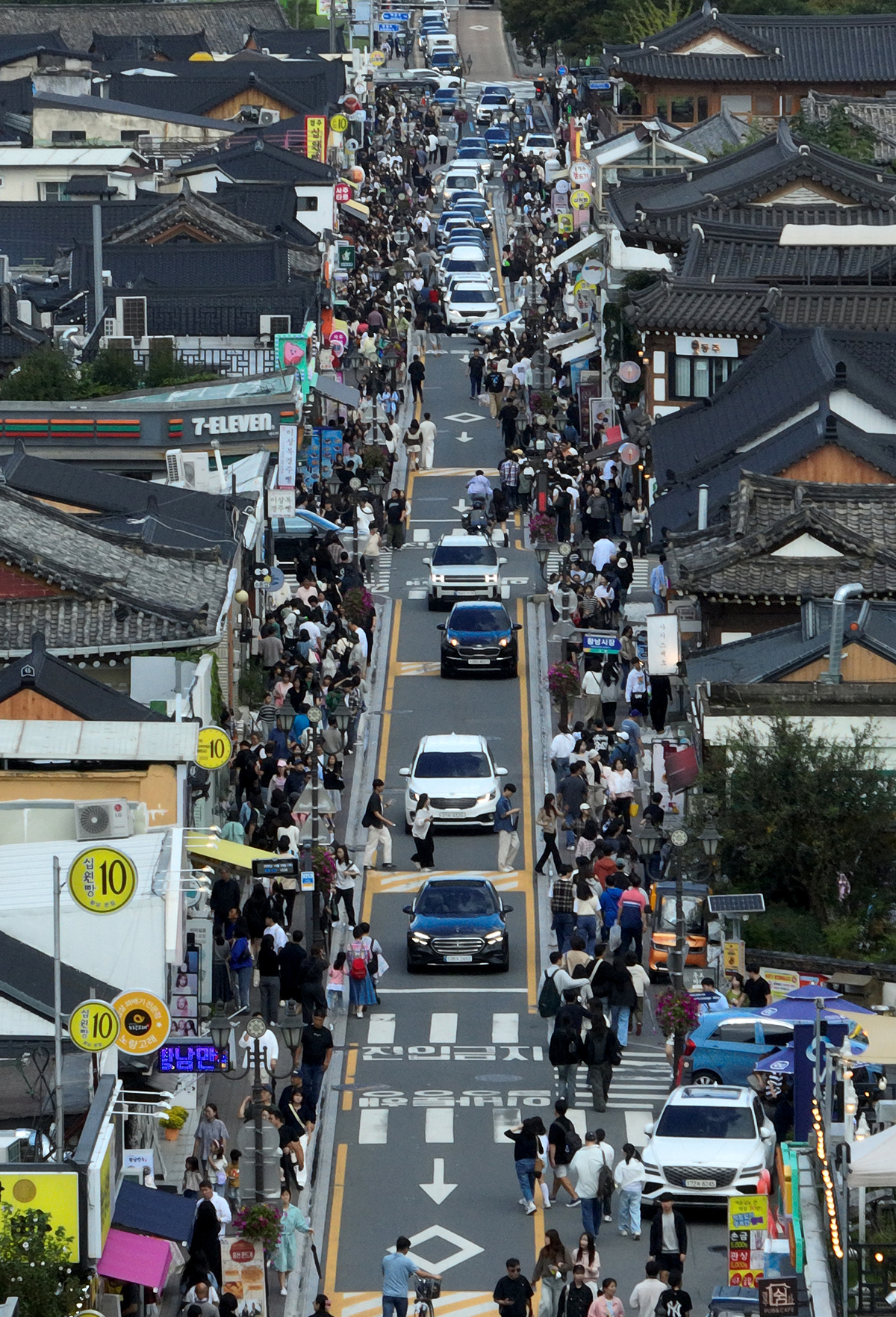 9일 오후 경주 황리단길에 긴 연휴 마지막 날을 즐기려는 관광객이 몰리면서 북새통을 이루고 있다. /이용선기자 photokid@kbmaeil.com