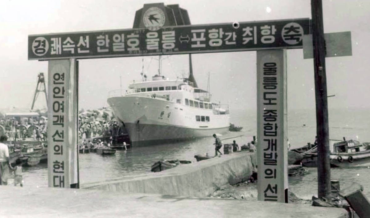 1963년 동양해운 청룡호가 첫 취항 했지만, 접안 시설이 없어 여객선을 항구 한 가운데 띄워 놓고 ‘종선(하시게)’으로 승객과 화물을 나르던 시절이 있었다. 1977년 7월 여객선 부두가 완공되고 한일1호가 취항하면서 포항~울릉 항로가 6시간대로 단축됐다.