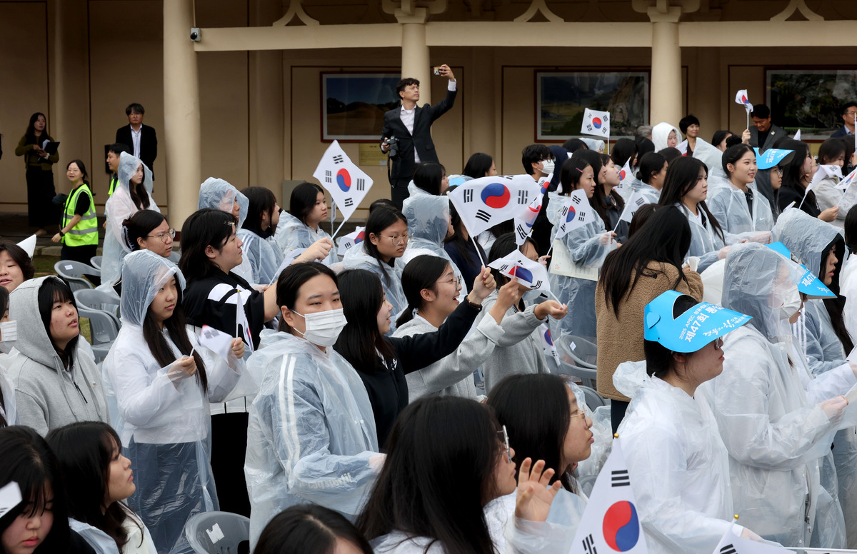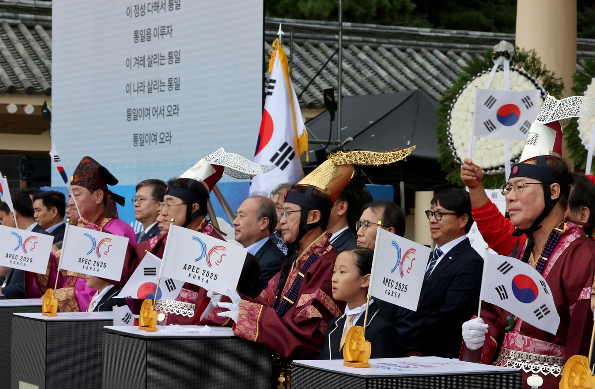 이철우 경북도지사, 주낙영 경주시장을 비롯한 내빈과 시민 대표들이 우리의 소원 노래를 합창하고 있다.