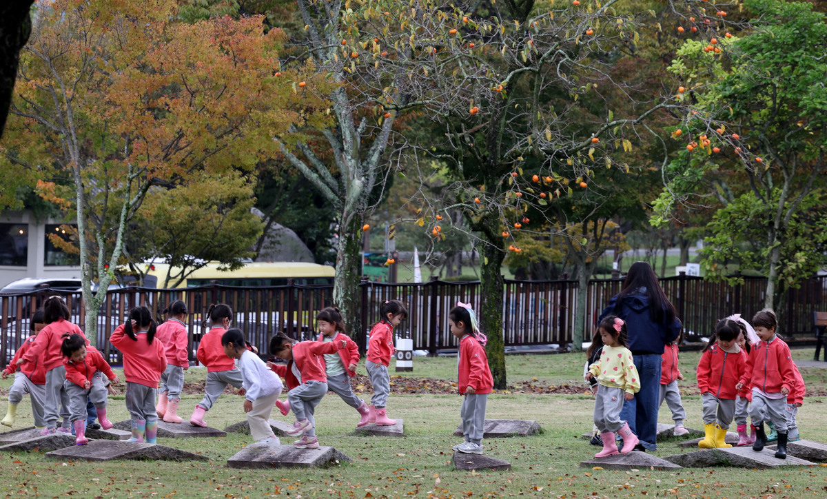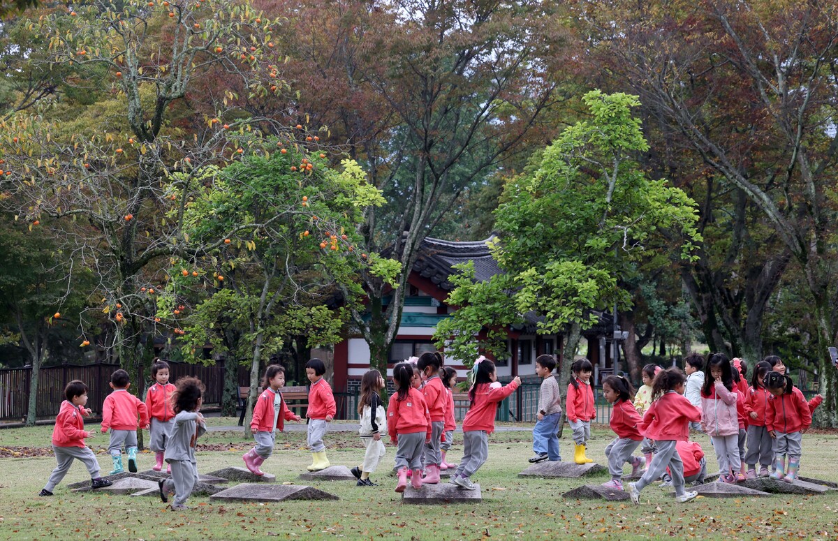 16일 경주 통일전으로 현장 학습을 나온 어린이집 아이들이 깊어져 가는 가을을 즐기며 뛰어놀고 있다. /이용선기자 photokid@kbmaeil.com