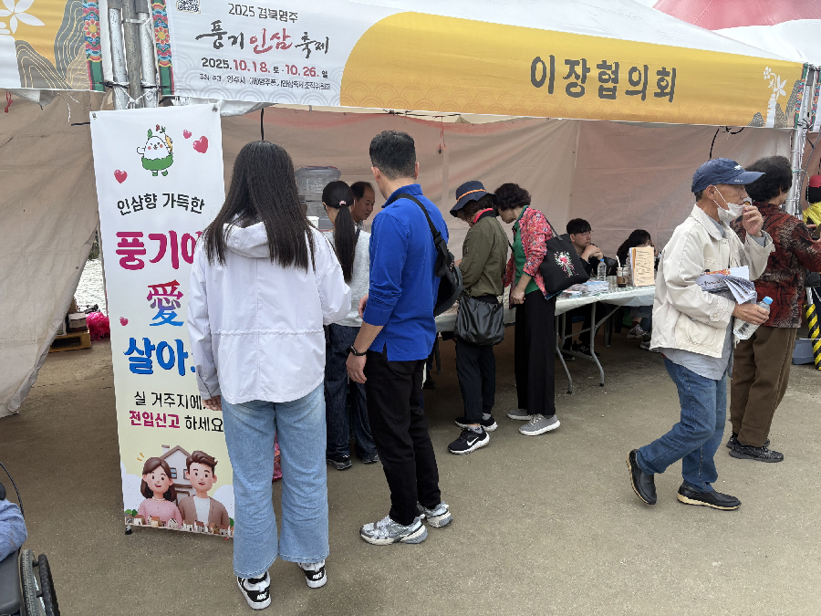 영주시 풍기읍은 2025 경북영주풍기인삼축제와 영주장날 농특산물대축제 기간인 이달 18일부터 26일 중 인구 유입 및 저출생 극복을 위한 풍기愛 살아요 부스를 운영한다.