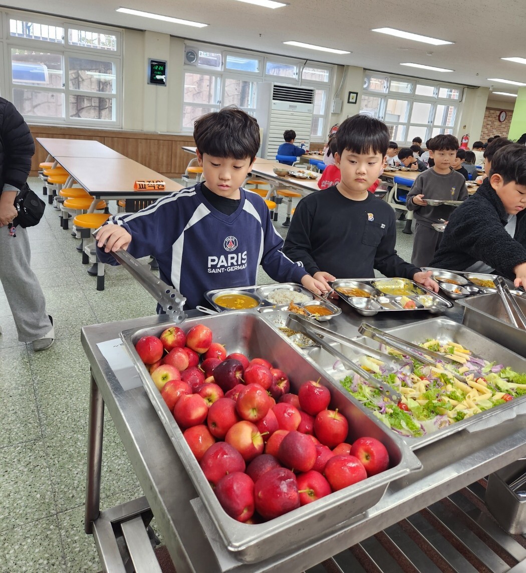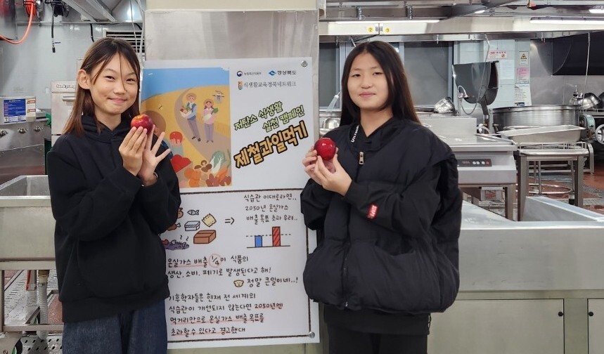 경북 봉화에서 자란 제철 미니사과를 통해 저탄소 식생활 실천의 중요성을 알리는 캠페인이 칠곡군 인평초등학교에서 최근 진행됐다.