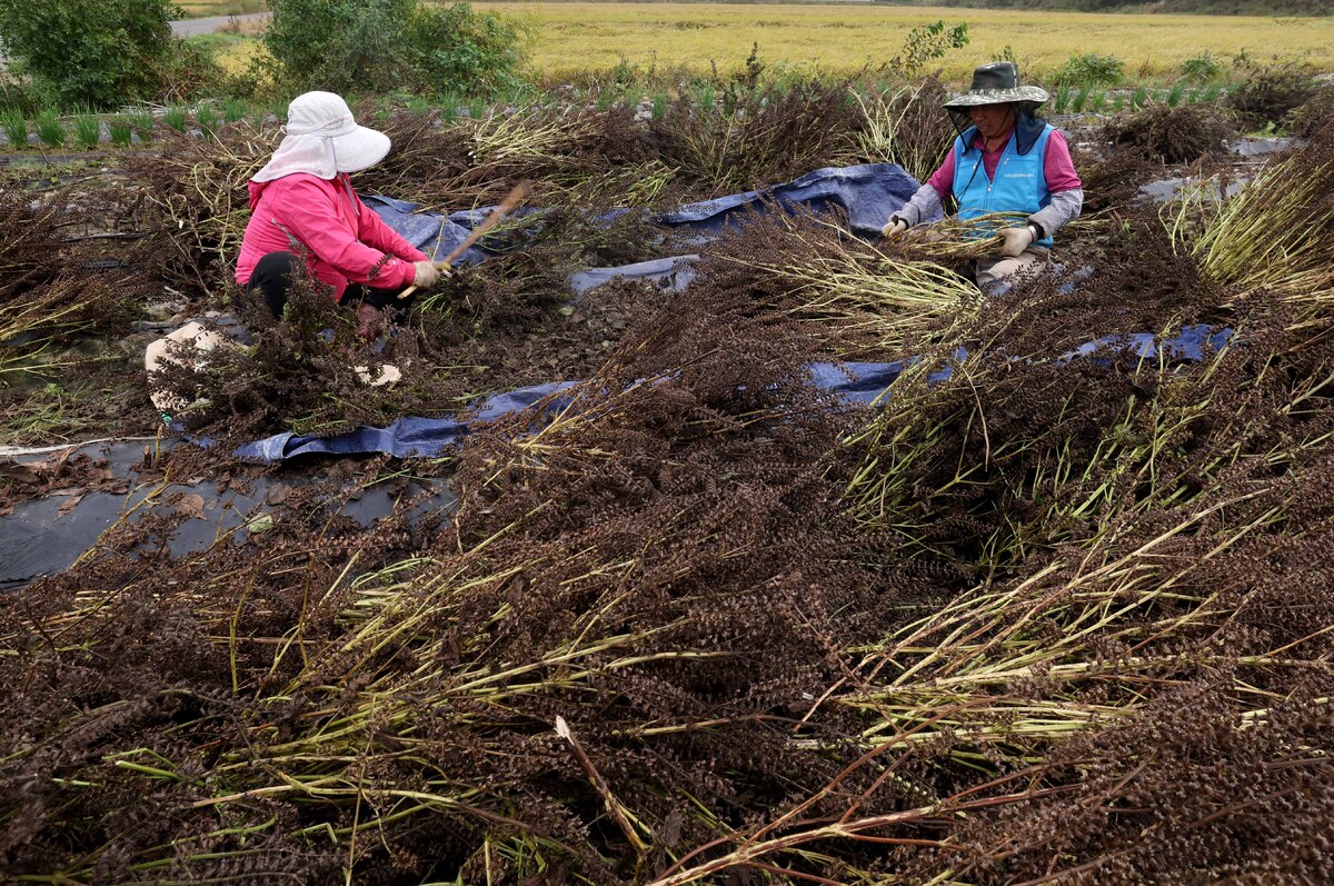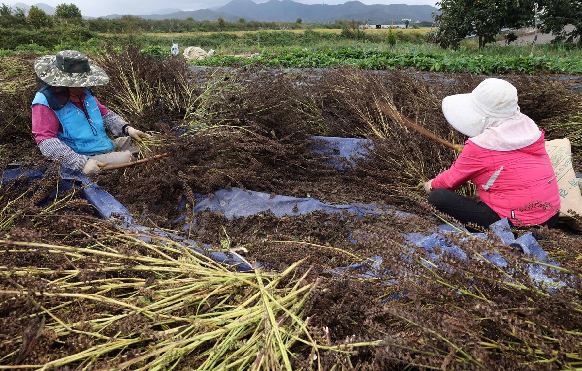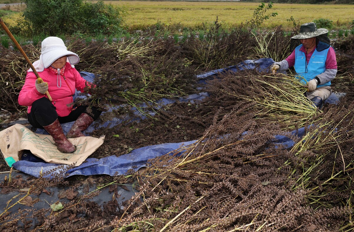 길었던 가을장마가 지나간 27일 오전 경주시 안강읍 농민들이 들깨를 털고 있다. /이용선기자 photokid@kbmaeil.com