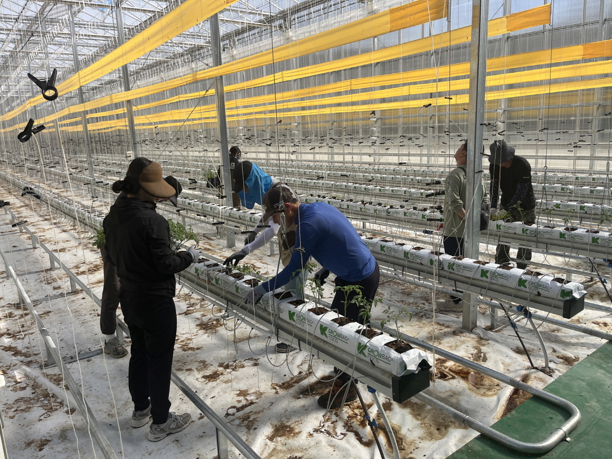 봉화군은 24일 봉성면 금봉리 청년 창업농 경영실습임대농장 스마트농업 온실에서 토마토 정식 작업을 진행했다.