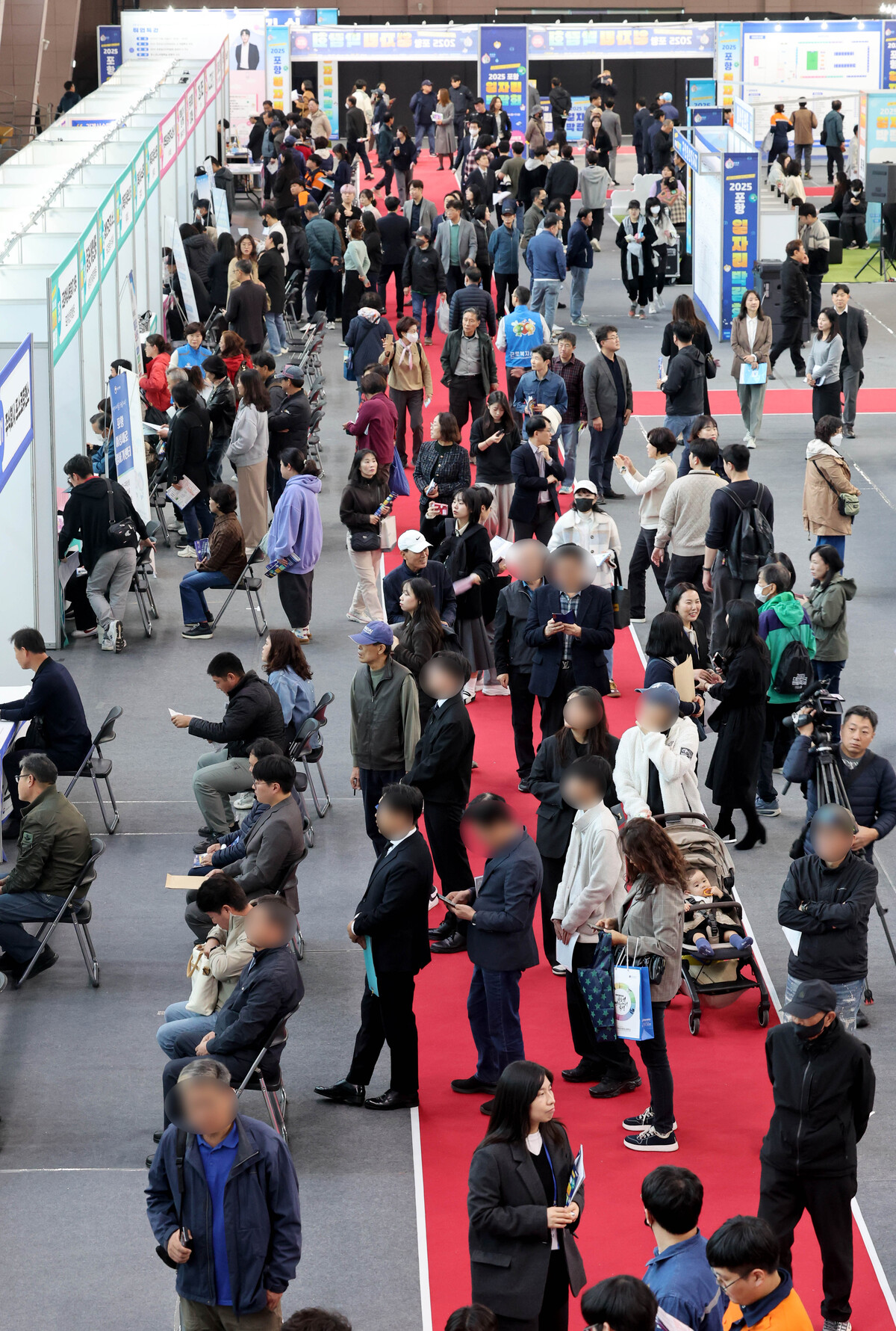 2025 포항 일자리 박람회가 29일 오후 종합운동장에 있는 만인당에서 열렸다. 수많은 구직자가 자신에게 맞는 직장을 찾고 있다. /이용선기자 photokid@kbmaeil.com