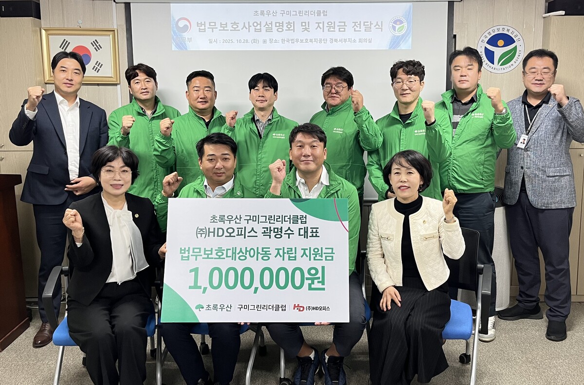 구미그린리더클럽 곽명수 위원은 한국법무보호복지공단 경북서부지소를 통해 법무보호대상자 자녀의 자립을 지원하기 위해 100만원의 후원금을 전달했다. 이 후원금은 보호대상자 가정 회복과 자녀의 안정적인 사회 정착을 돕는데 사용될 예정이다.
