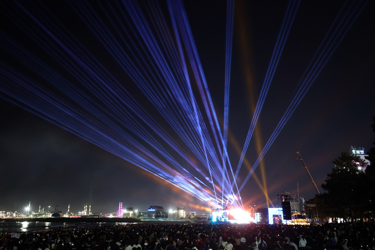 신나는 공연과 함께 레이저쇼가 펼쳐지고 있다.