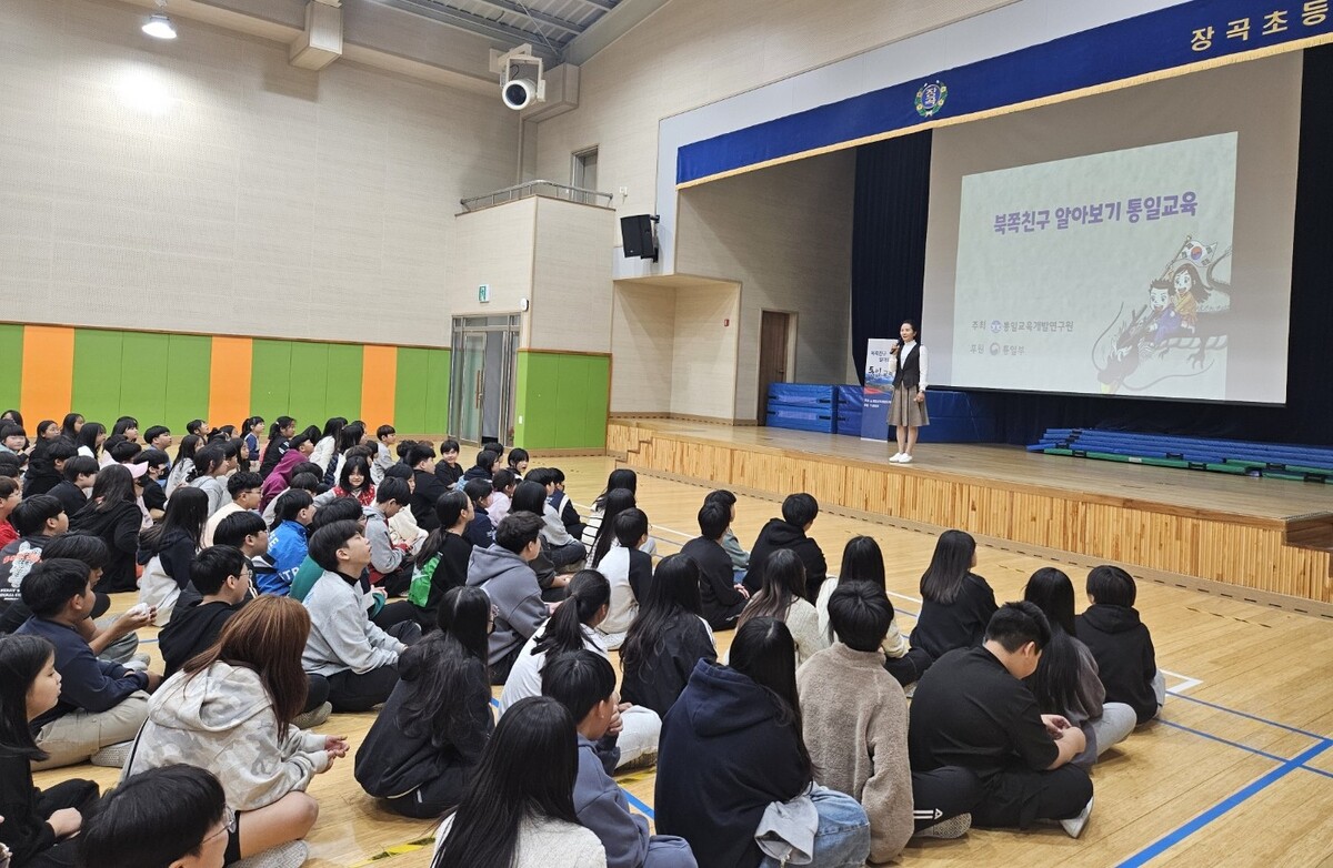 경북 칠곡군 장곡초등학교(교장 박춘택)는 10월 28일, 강당에서 4~6학년 학생들을 대상으로 ‘북쪽 친구 알아보기’라는 주제로 통일교육을 실시했다.