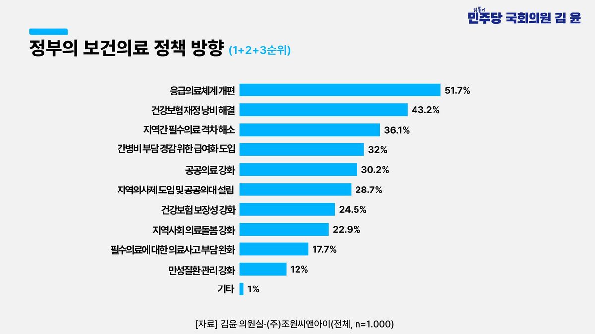 김윤 의원은 “응급의료체계 개편을 통해 응급실 뺑뺑이 해소를 최우선 과제로 삼고, 국민 의견을 반영한 정책 추진에 힘쓰겠다”고 밝혔다.