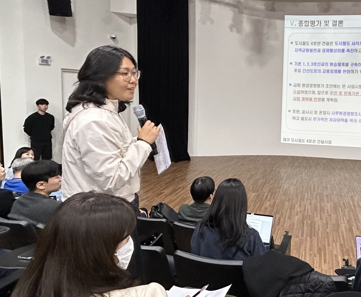 범어3동 주민 김수현 씨는 “히말라야 시다 나무 보존 방안과 공사 기간 소음·분진 대책이 부족하다”고 지적하자 공사 측은 “교각 간격을 40m로 조정해 수목 훼손을 최소화했으며, 녹지과와 협의해 관리 방안을 마련하겠다”고 답변했다.