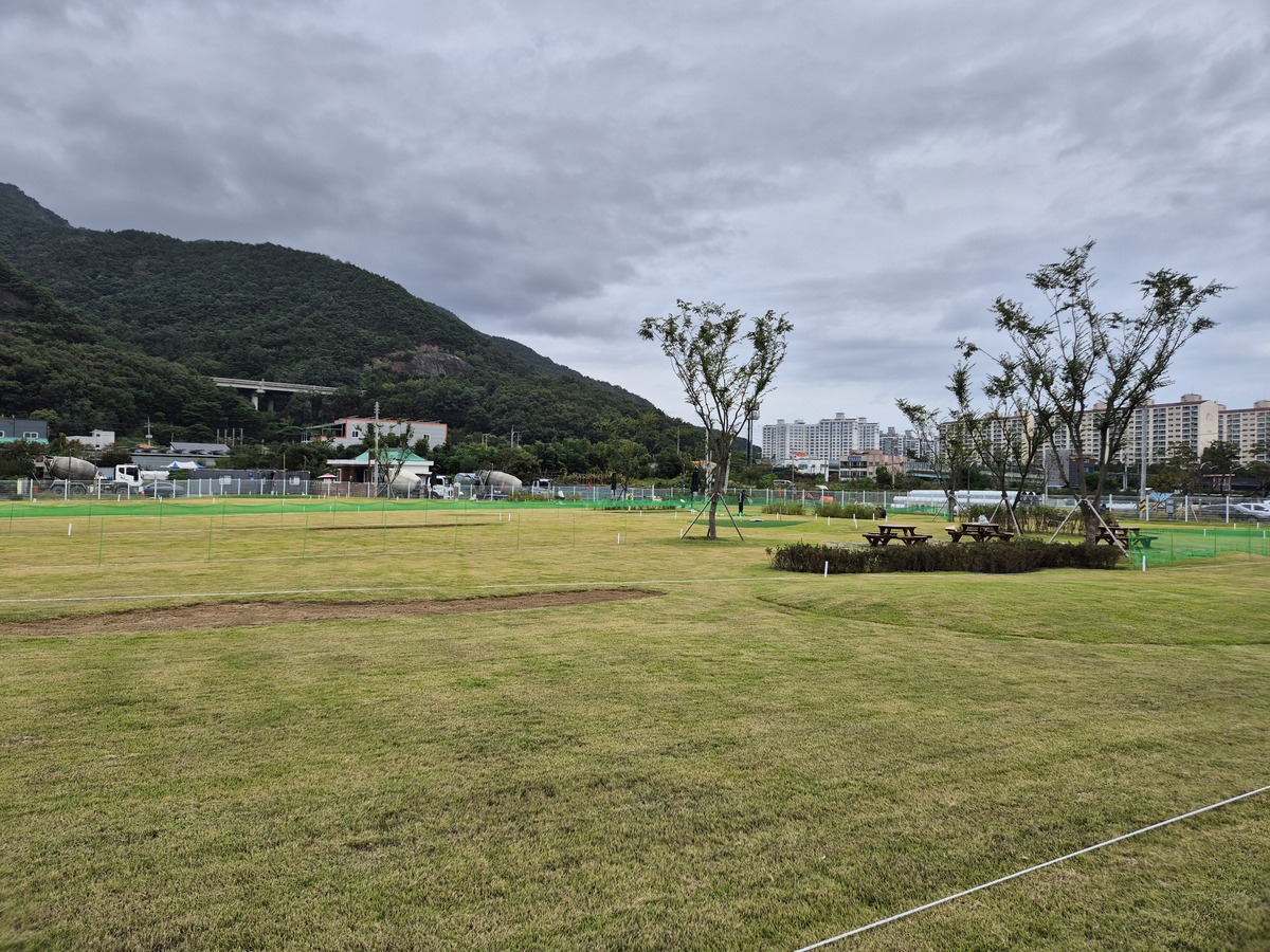 시는 남천옥빛파크골프장의 잔디 활착과 보호를 위해 줄심기에서 판심기로 잔디 식재 방법을 바꾸었다.