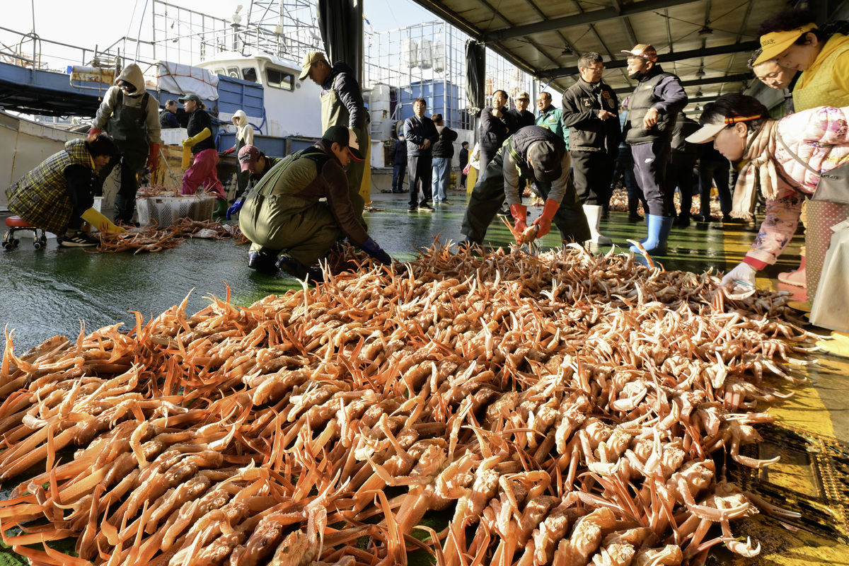 영덕군은 4일 겨울철 대표 수산물인 영덕대게가 5개월 금어기를 끝내고 지난 3일 영덕군 강구항 위판장에서 올해 첫 위판을 시작했다했다고 밝혔다.