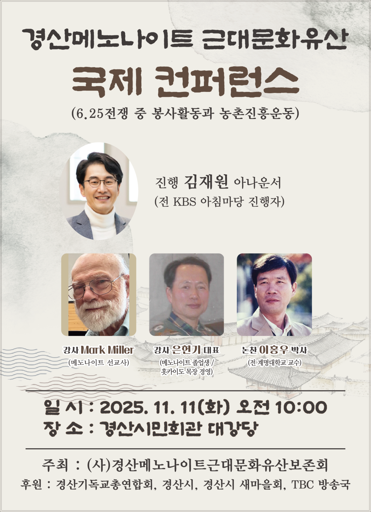(사)경산 메노나이트 근대 문화유산보존회는 11일 경산시민회관 대강당에서 ‘경산 메노나이트 근대 문화유산 국제 콘퍼런스’를 개최한다.
