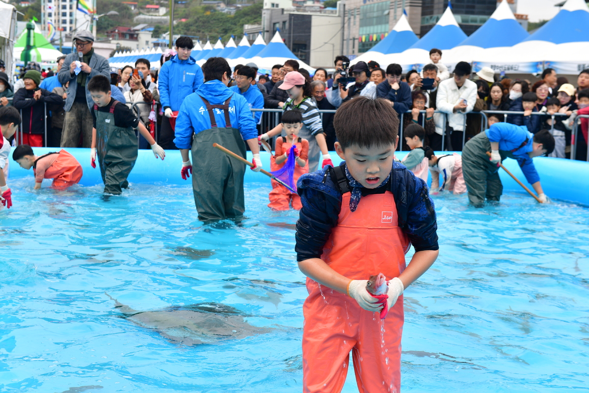 축제는 ‘먹고, 잡고, 즐긴다’를 주제로 다양한 체험과 공연이 이어졌다. 맨손 활어 잡기 체험에는 어린이와 가족 단위 방문객이 몰려 환호성이 터져 나왔다. 신선한 회를 즉석에서 맛볼 수 있는 물회 퍼포먼스와 수산물 무료 시식 코너도 큰 호응을 얻었다. 주민들이 직접 참여한 죽변항 화합올림픽은 세대를 아우르며 웃음을 자아냈다.