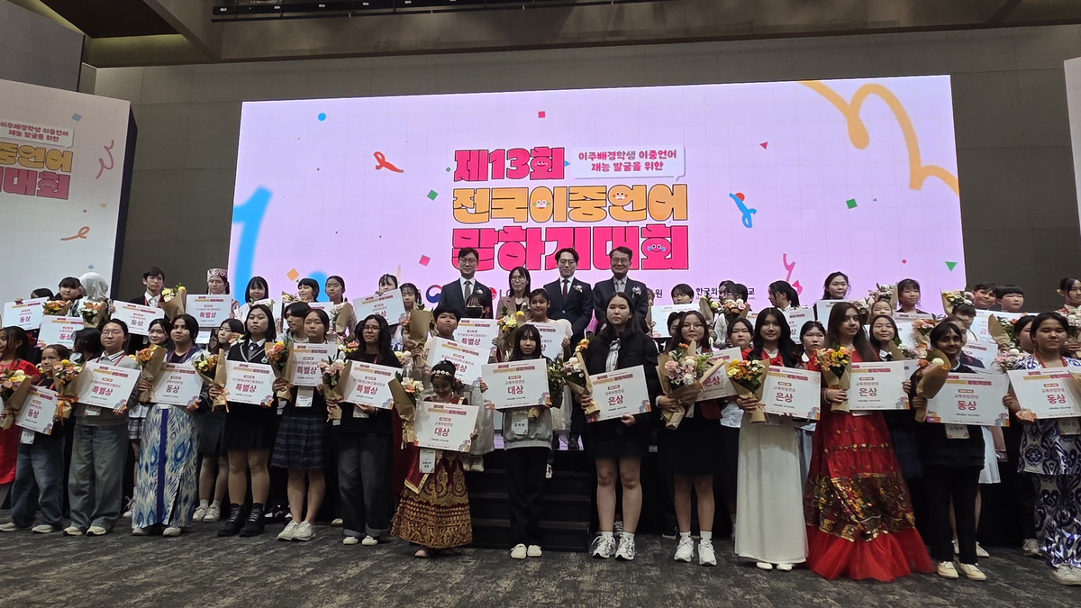 임종식 경북교육감은 “이번 수상은 학생들이 자신의 뿌리 언어와 문화를 소중히 여기며, 한국 사회 속에서 자긍심을 가지고 성장하고 있음을 보여준 의미 있는 성과”라며 “앞으로도 이중언어교육 지원을 강화하여 학생들이 언어적 다양성과 문화적 소양을 기반으로 미래 글로벌 인재로 성장할 수 있도록 적극 지원하겠다”고 밝혔다.