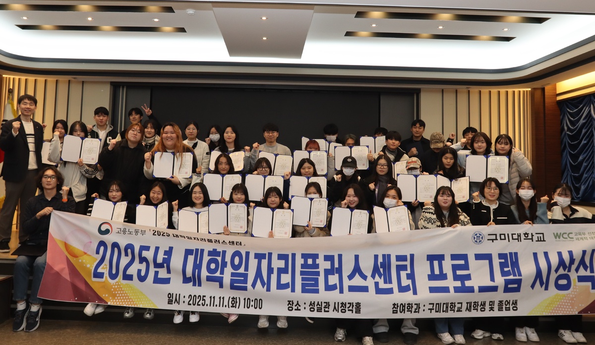 구미대학교(총장 이승환)는 11일 시청각홀에서 ‘2025년 대학일자리플러스센터 프로그램 시상식’을 열었다.