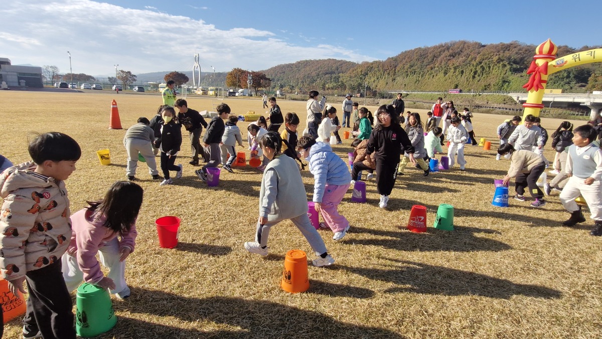 대구시교육청이 12일 군위군 생활체육공원에서 대구군위초병설유치원 유아와 대구군위초 1~2학년 학생 90명을 대상으로 ‘2025 유·초 연계 교육 놀이로 잇-다’ 프로그램을 진행했다.